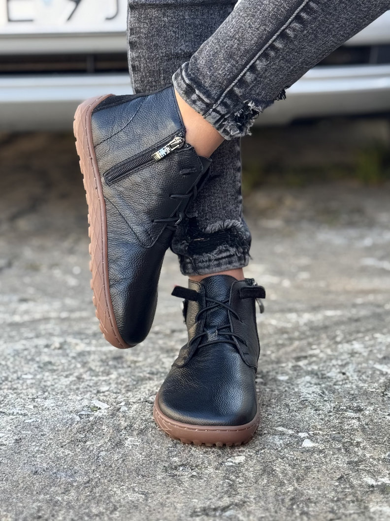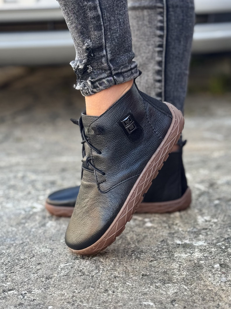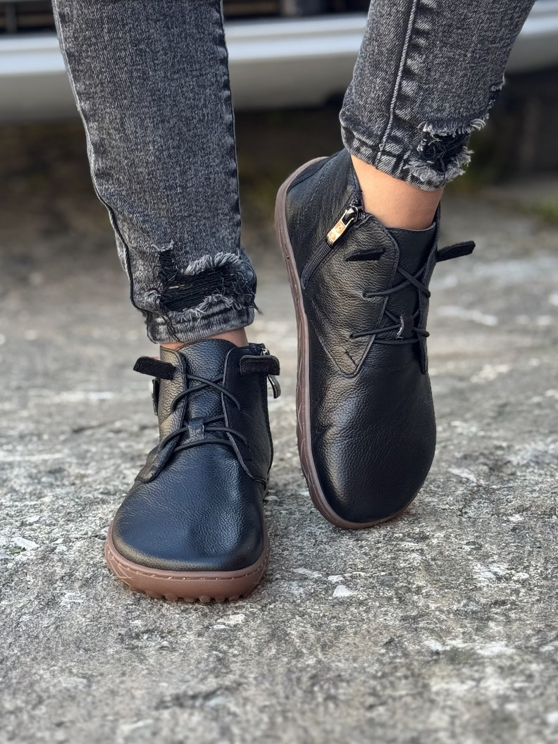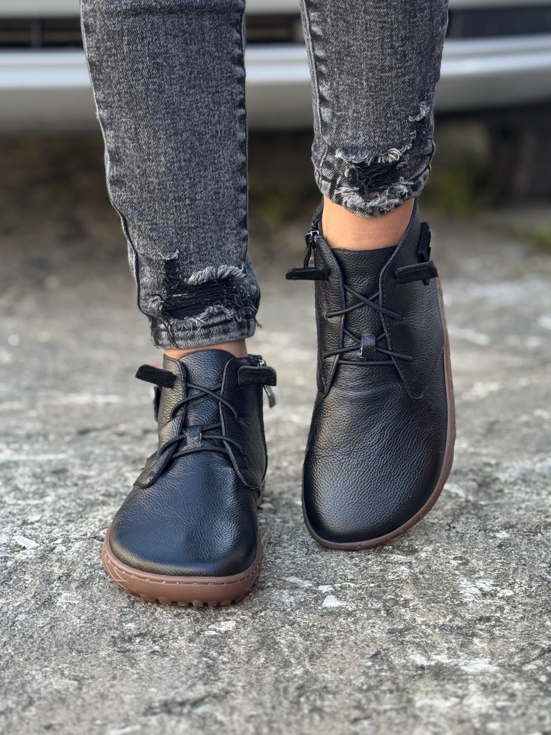 Kazadii Barefoot RUN to ultra lekkie botki ze skóry naturalnej od polskiej marki KAZADII, które łączą elegancję premium z filozofią barefoot. Szeroki przód, elastyczna podeszwa i brak podbicia pozwalają stopie pracować naturalnie, dając uczucie chodzenia boso. Wnętrze wykończono przyjemnym flauszem – nie jest to ocieplenie, ale skutecznie chroni przed chłodem i daje komfort zarówno solo, jak i ze skarpetką. Praktyczny suwak i subtelna ozdoba nadają całości nowoczesnego charakteru, idealnego na co dzień i do miejskich stylizacji