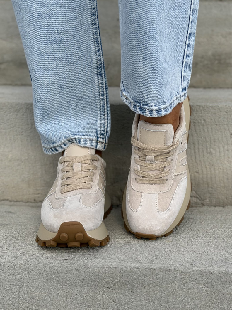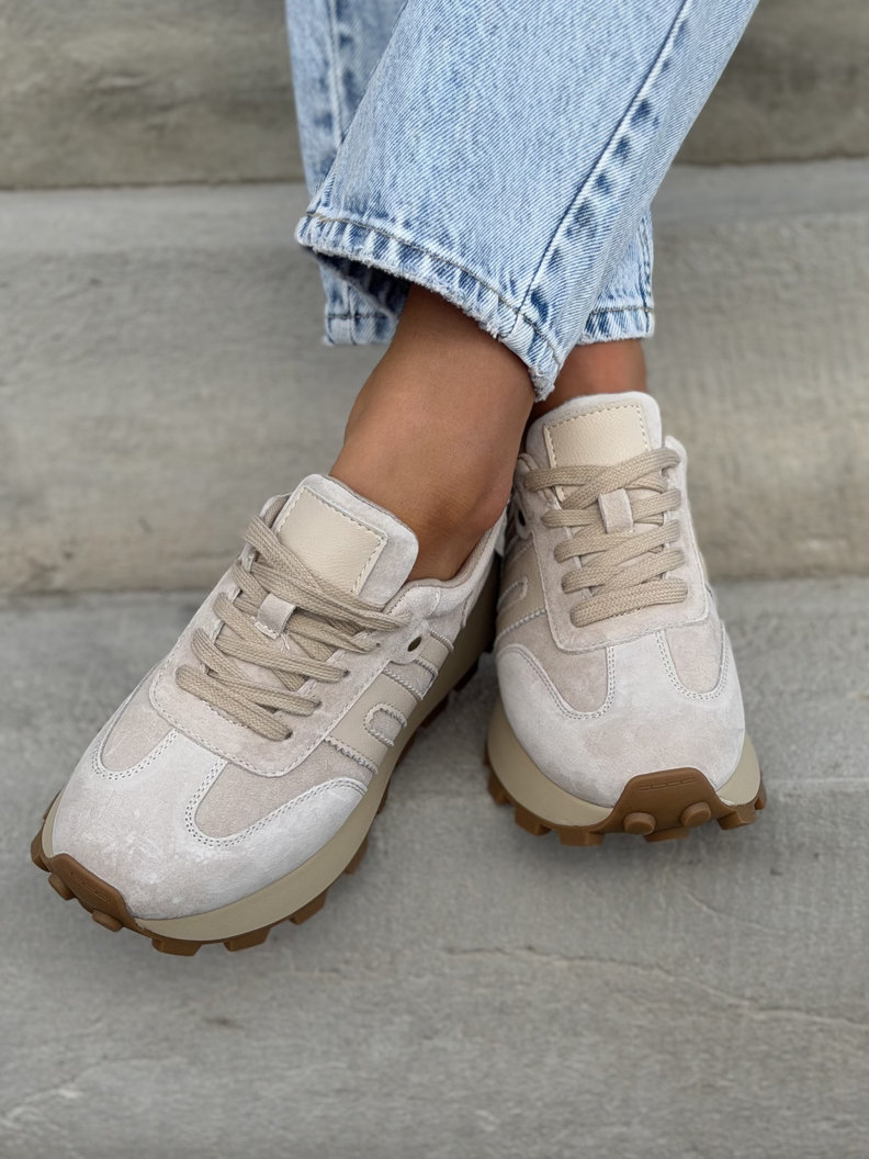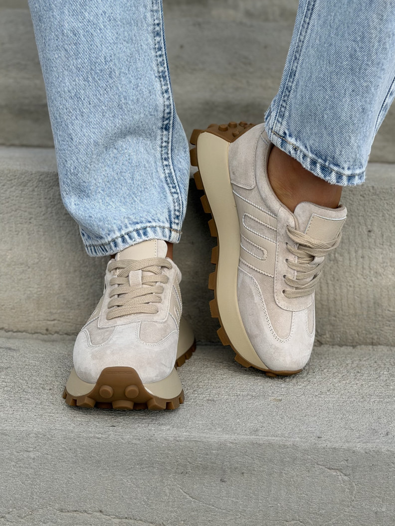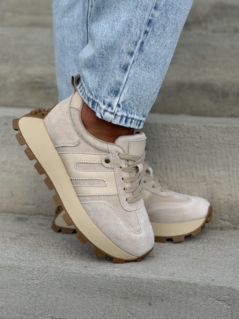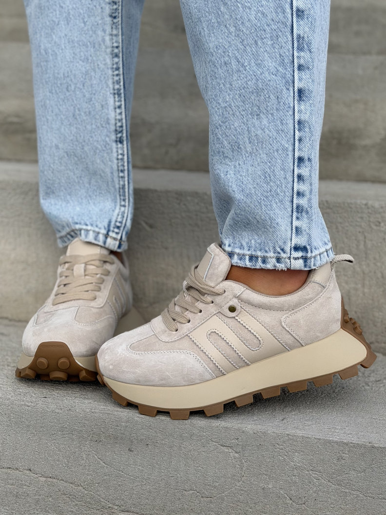 ULTRALEKKIE sneakersy MONTANO BEIGE na wyższej podeszwie skóra naturalna