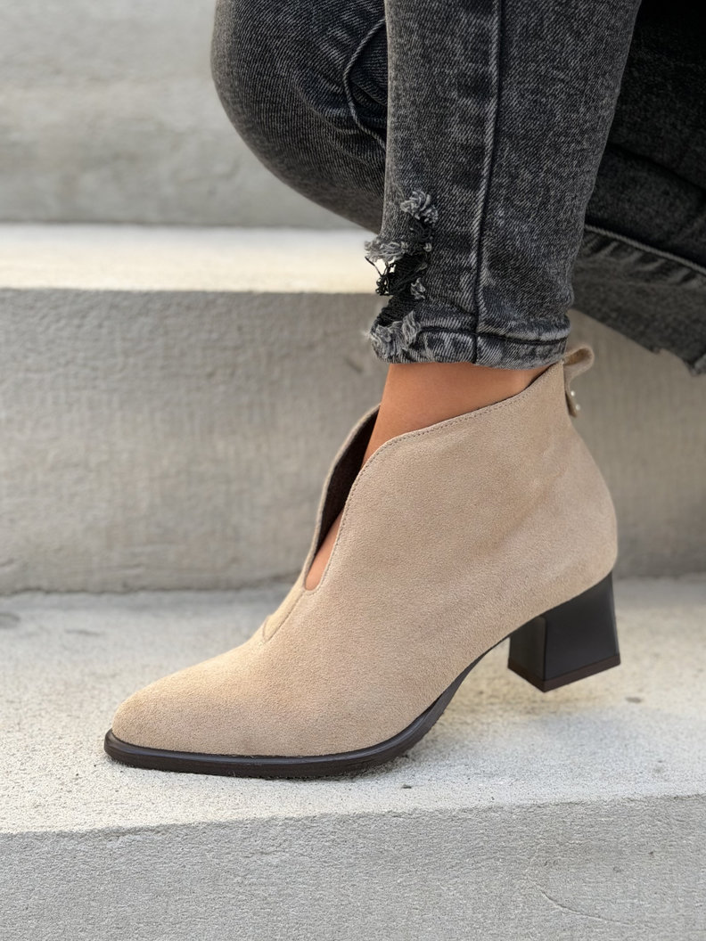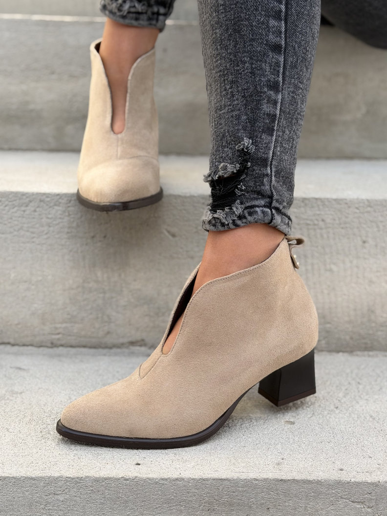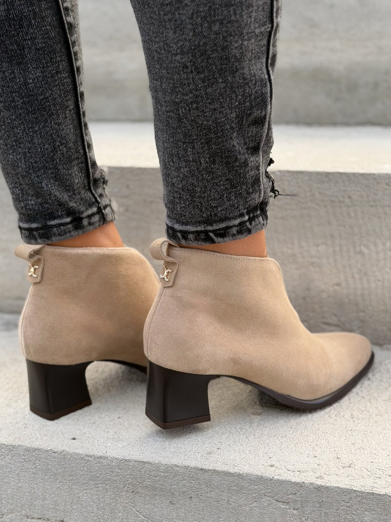 Wiosenne botki KAZADII LUVIO BEIGE na obcasie skóra naturalna