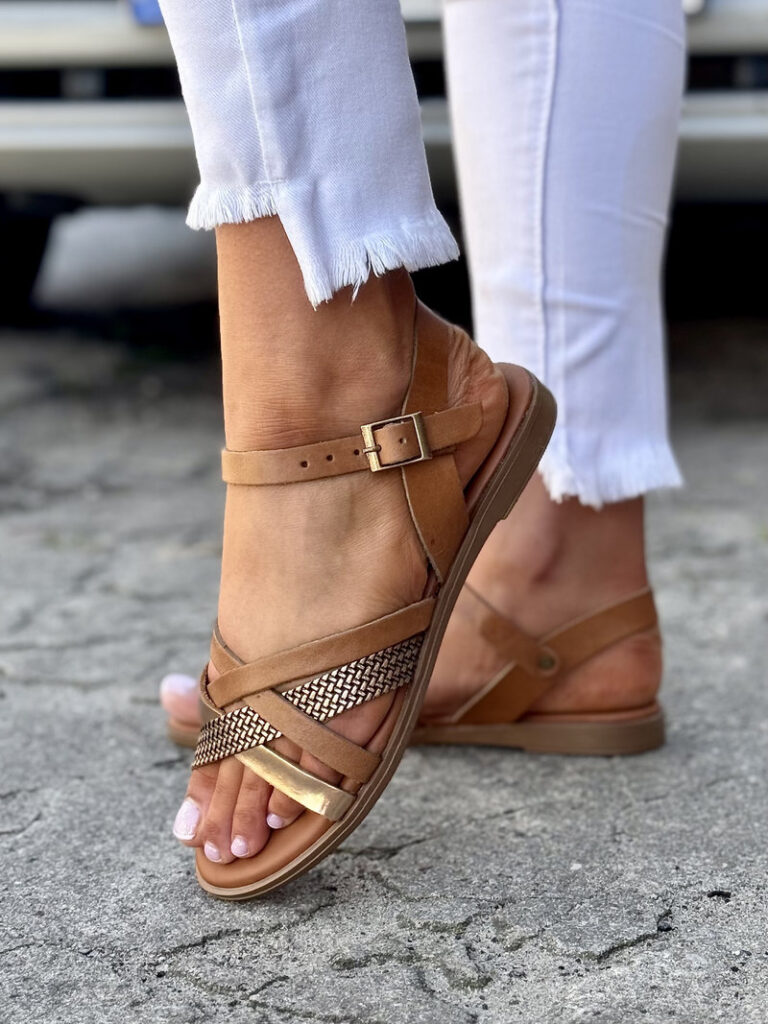 WYGODNE sandałki SIRENA CAMEL GOLD skóra naturalna