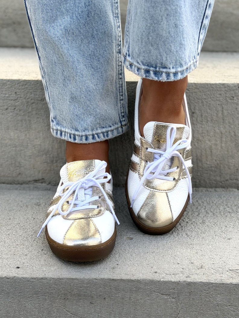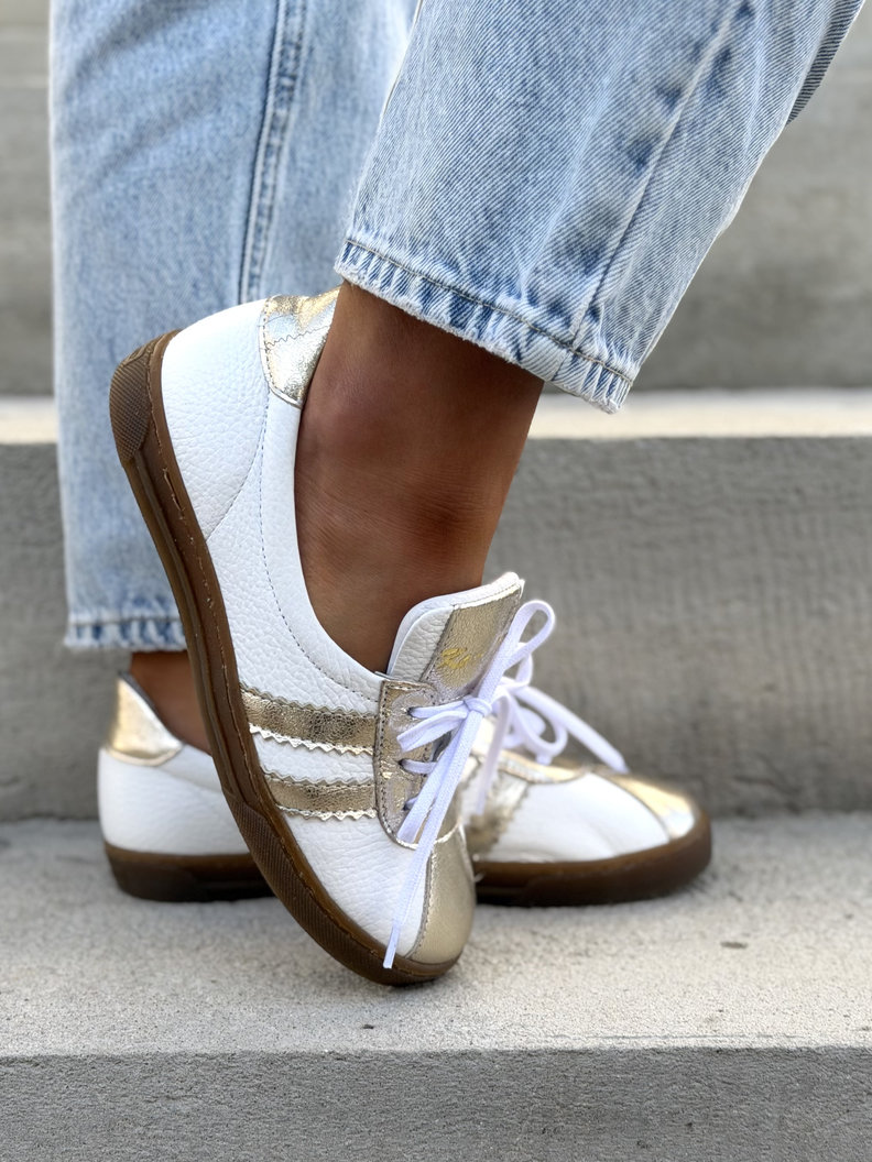 Trampki naszej marki KAZADII, ręcznie wykonane w Polsce z naturalnej skóry wewnątrz i na zewnątrz, dzięki czemu są wyjątkowo miękkie, trwałe i komfortowe na co dzień.