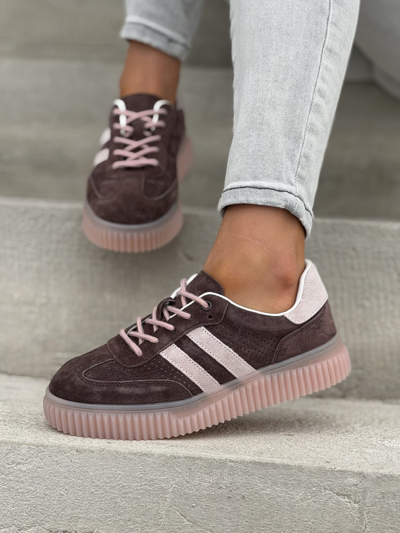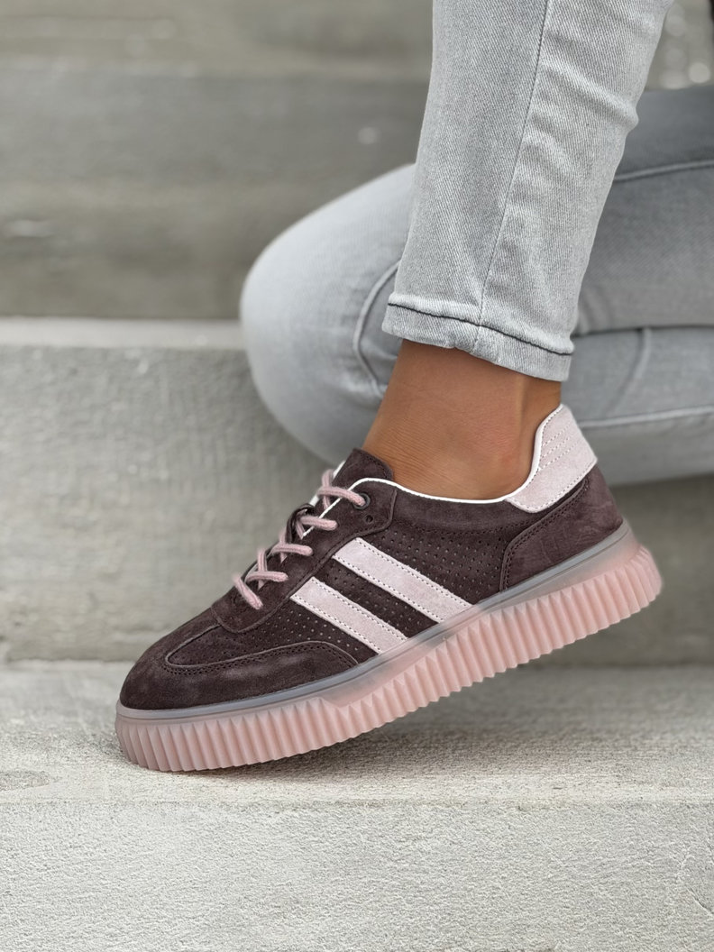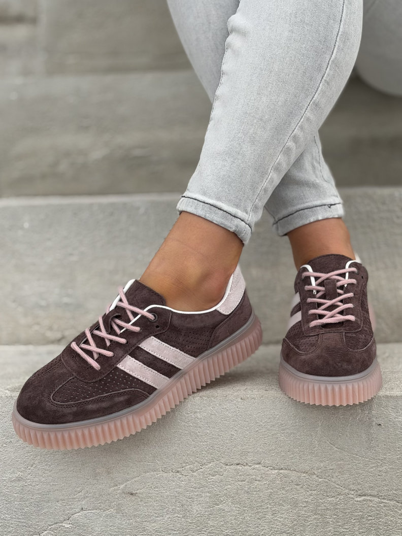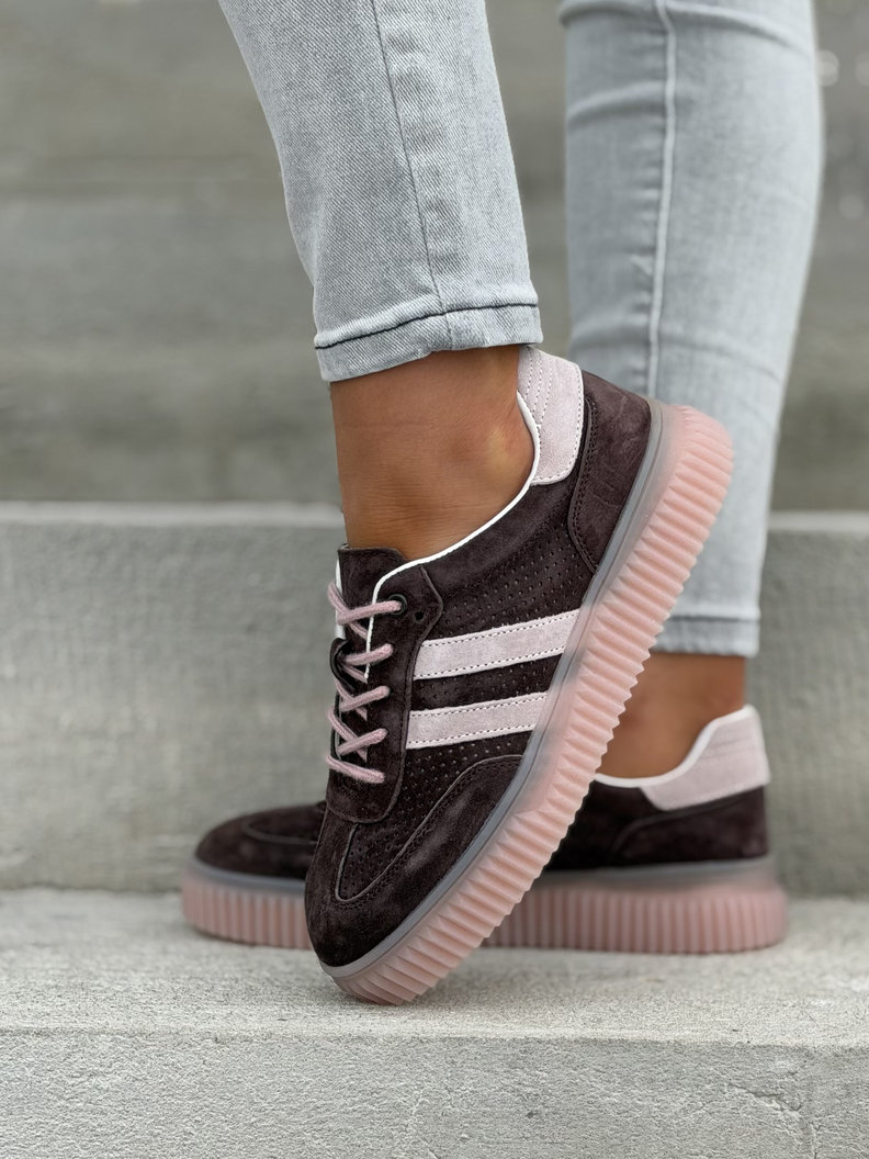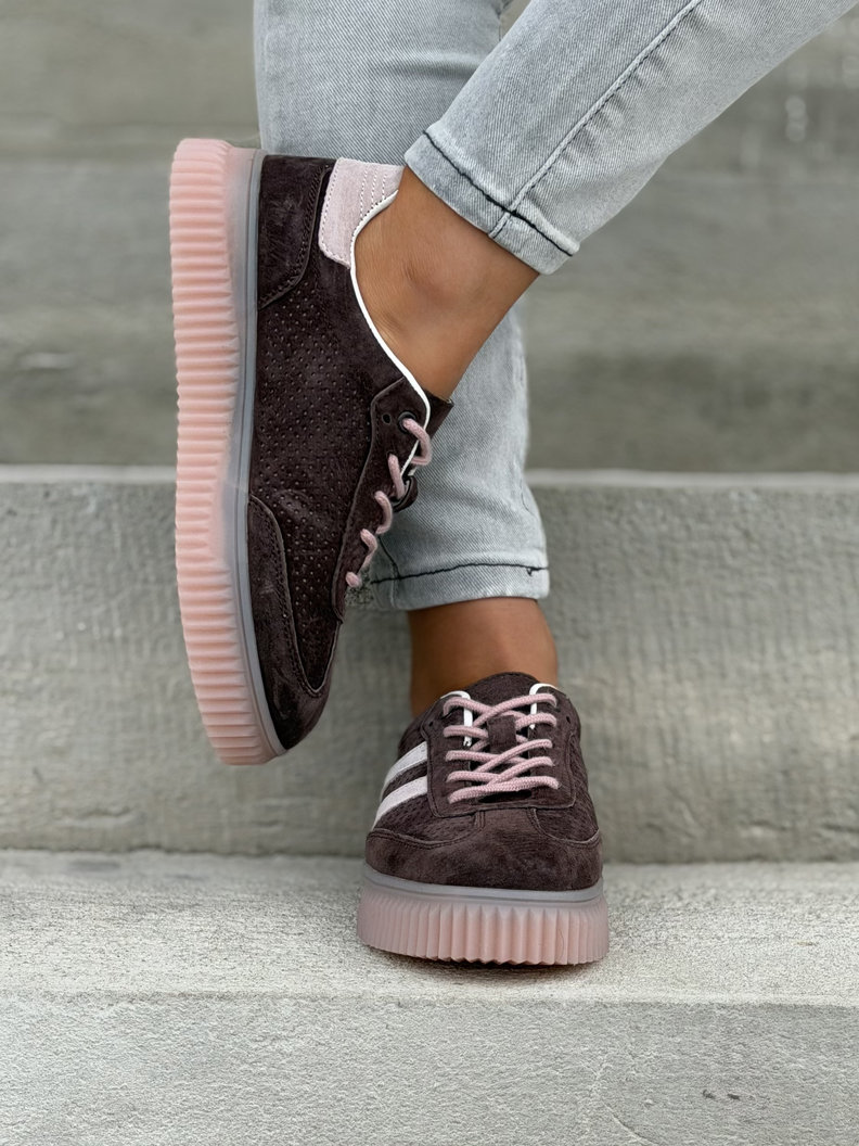 Wygodne trampki SUMMER WALK CHOCO PINK na wyższej podeszwie ze skóry naturalnej