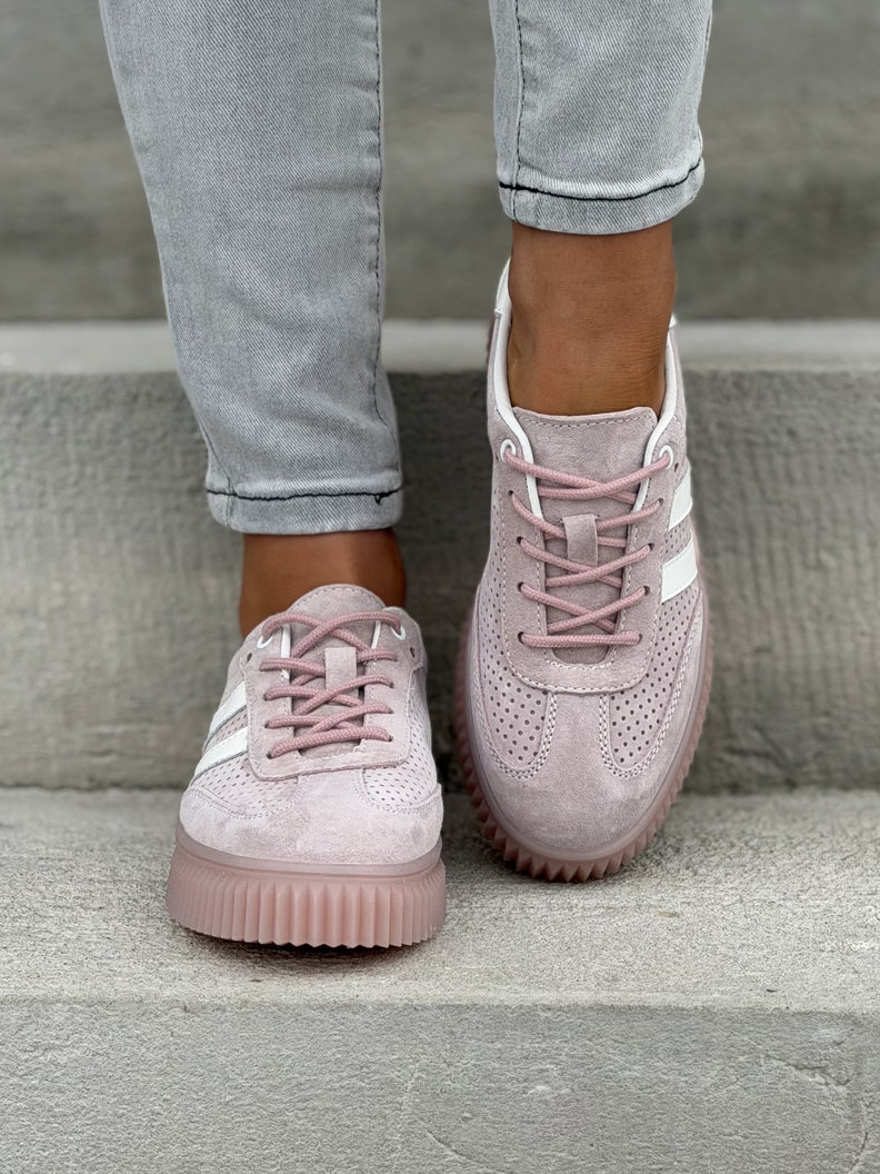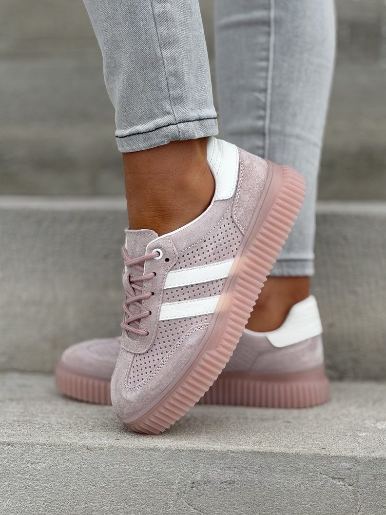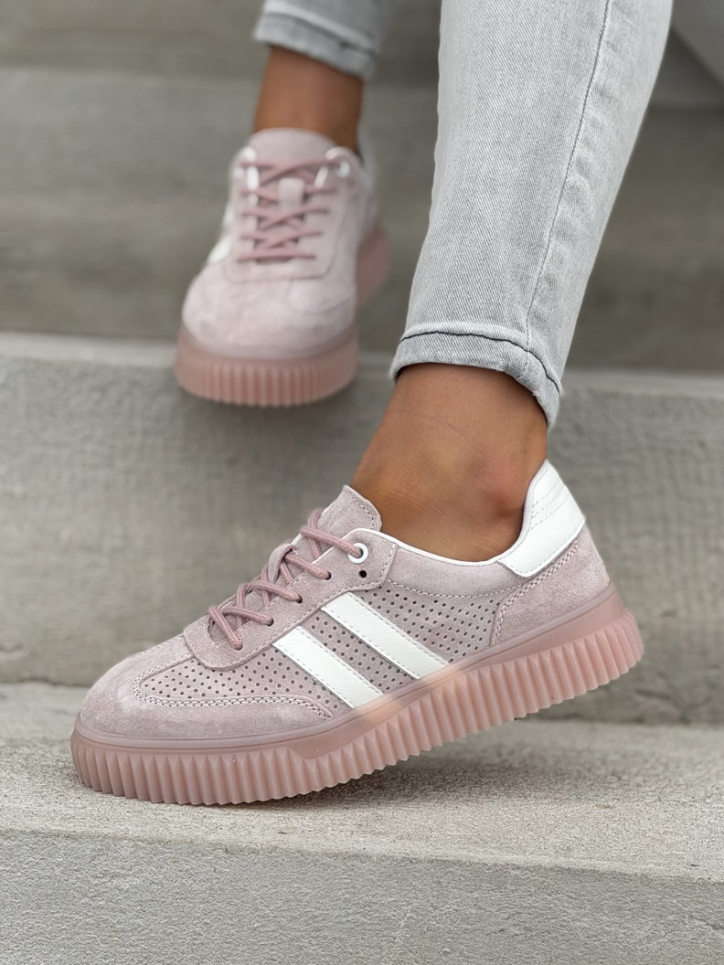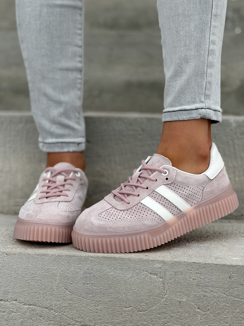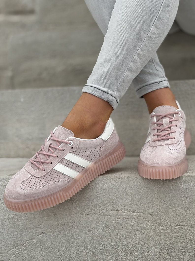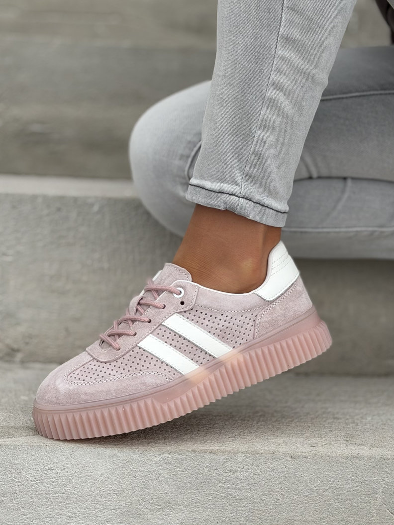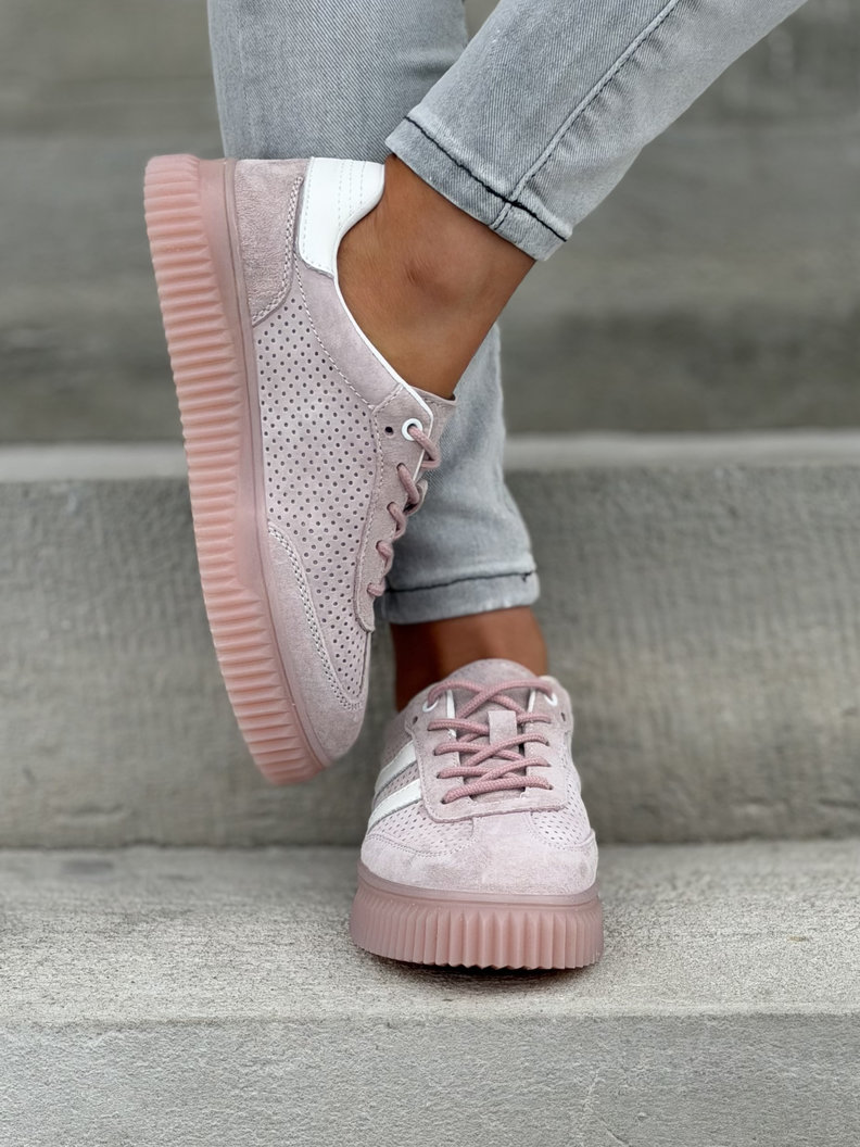 Wygodne trampki SUMMER WALK PINK na wyższej podeszwie ze skóry naturalnej