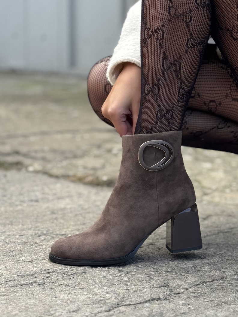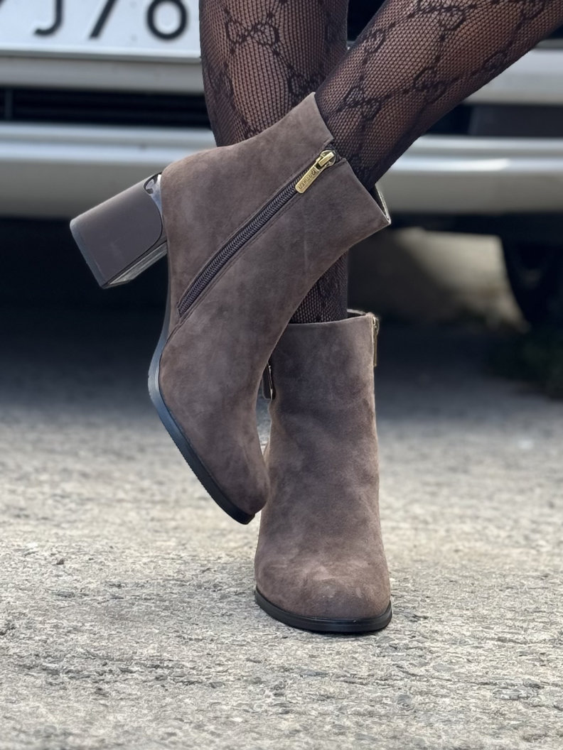 Stylowe botki damskie na słupku, wykonane ze skóry naturalnej z ociepleniem wewnątrz kocem obuwniczym. Stabilny 6,5 cm obcas gwarantuje wygodę i pewny krok. Idealne do sukienek, spódnic i eleganckich spodni – must-have na jesień i zimę.
