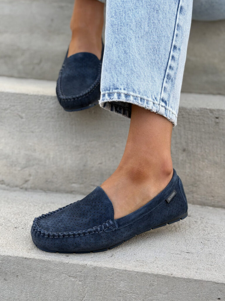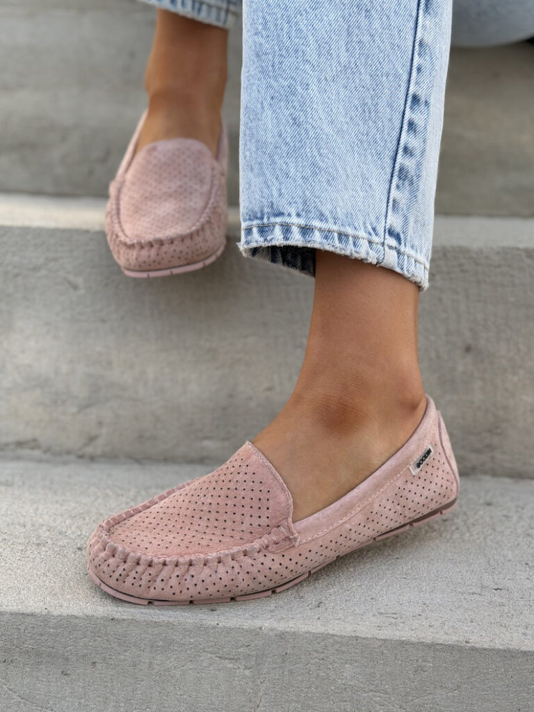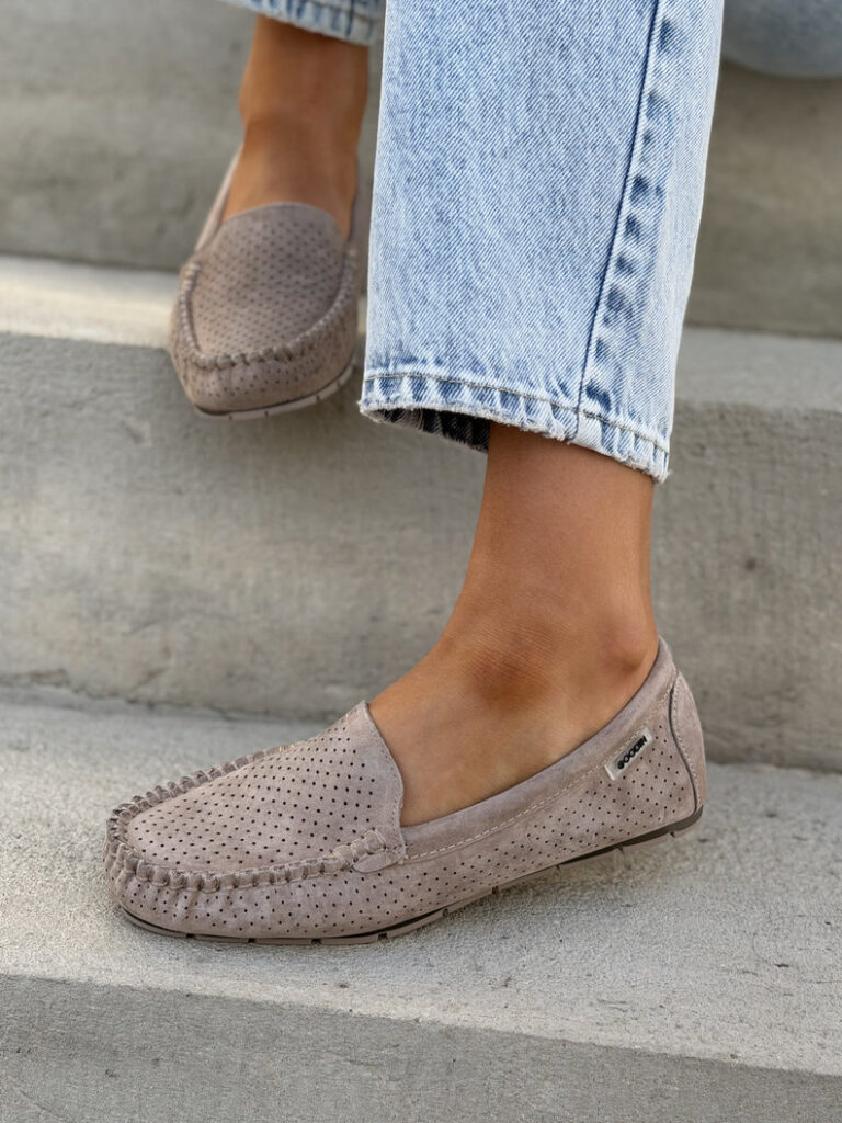 Zgrabne i bardzo wygodne mokasyny wykonane z naturalnej skóry z dodatkiem oddychającego materiału, który zapewnia świeżość przez cały dzień. Miękka wkładka zwiększa komfort noszenia, a klasyczny fason świetnie dopasowuje się do stopy i pasuje do wielu stylizacji.