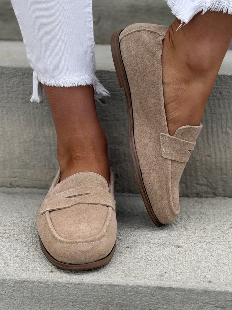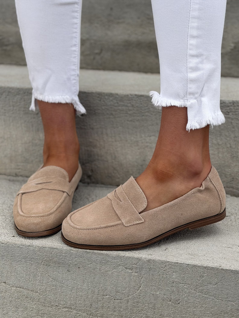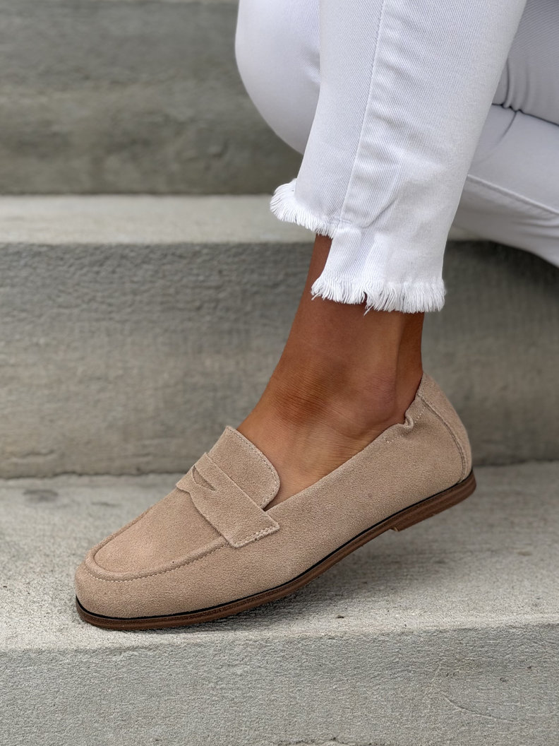 Zgrabne mokasyny CLLOE BEIGE SUEDE skóra naturalna