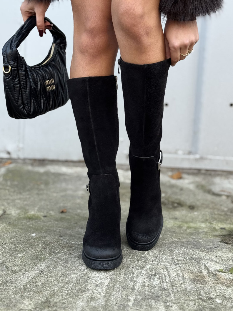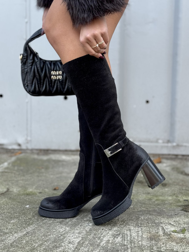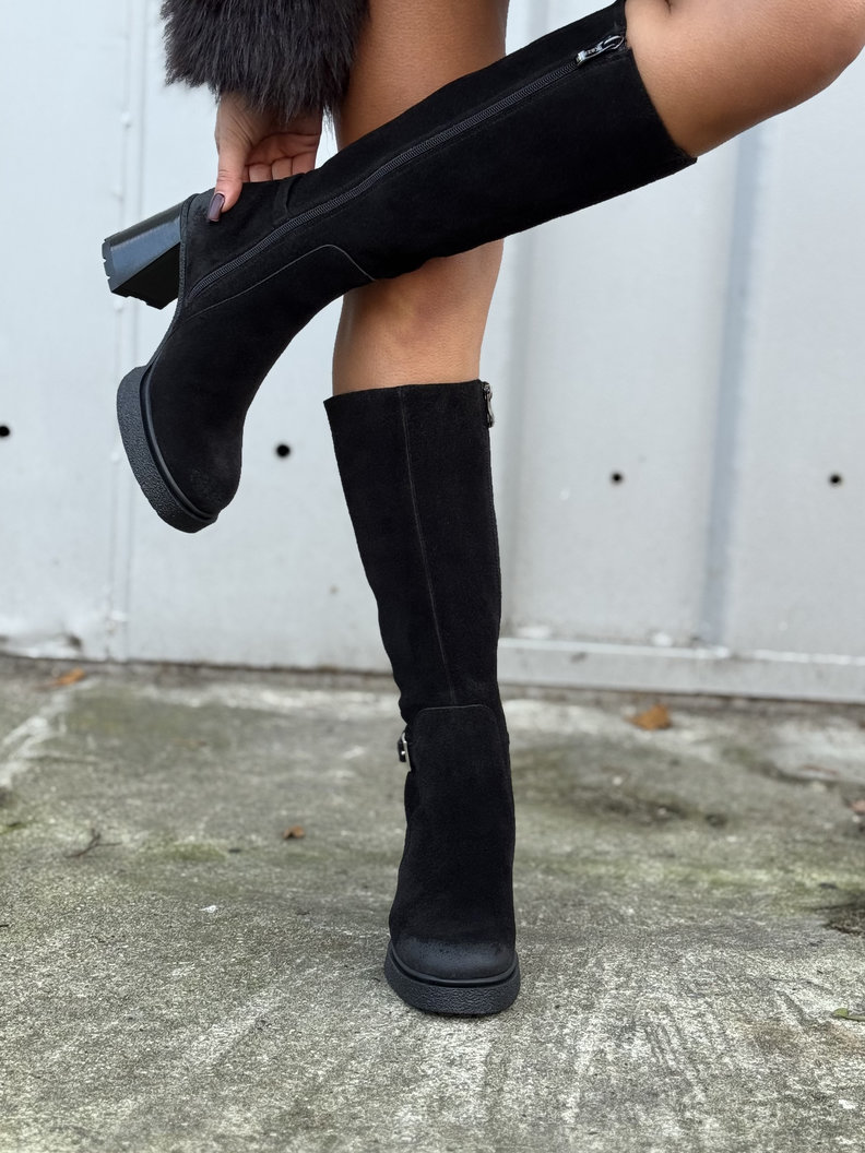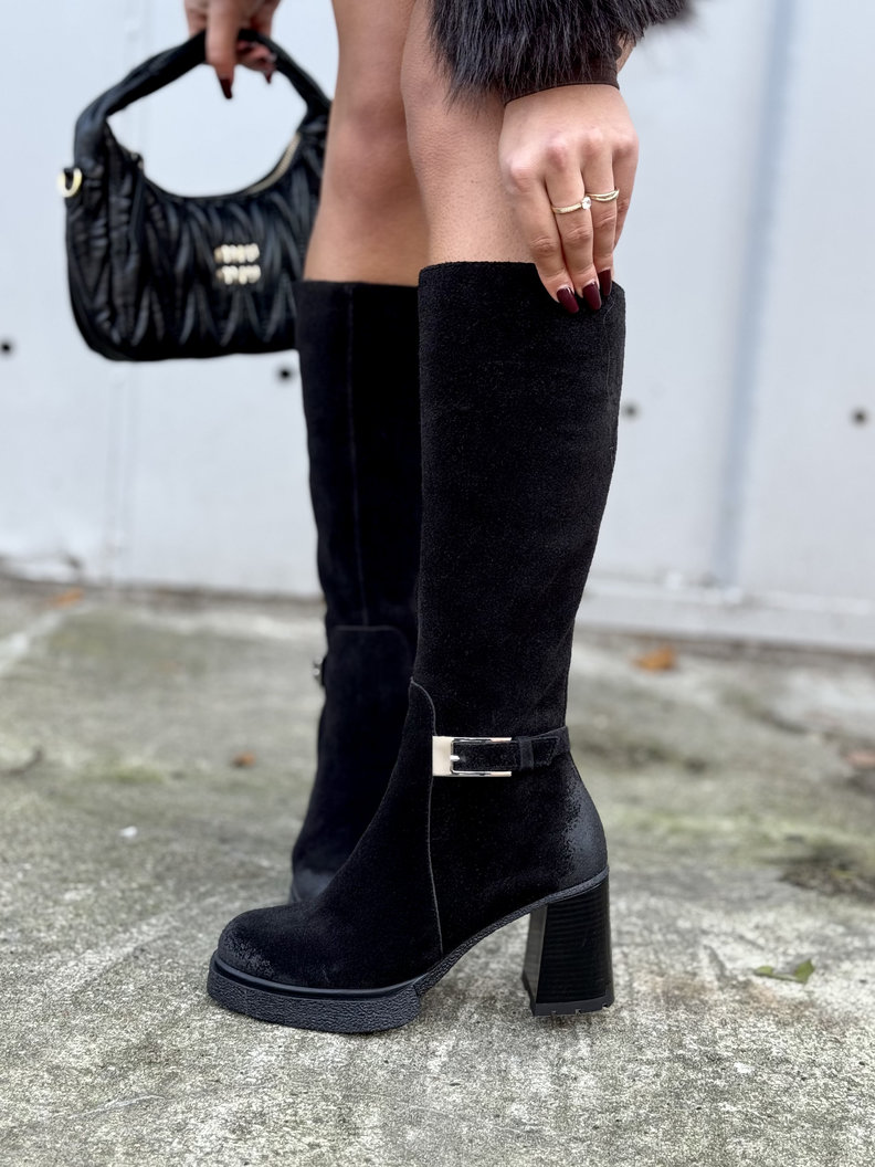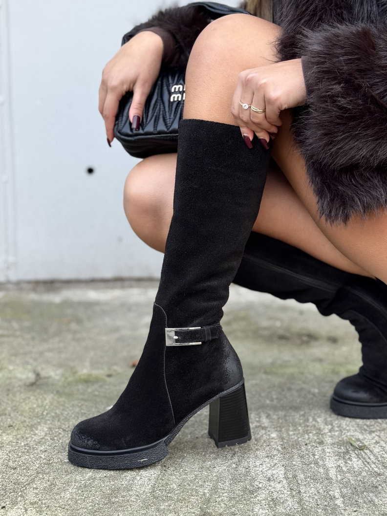 Zgrabniutkie botki KAZADII MELISSA BLACK SUEDE na obcasie skóra naturalna