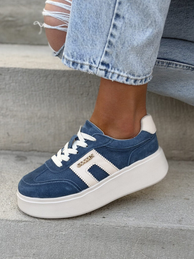 Trampki na wyższej podeszwie MARIVELLE BLUE skóra naturalna