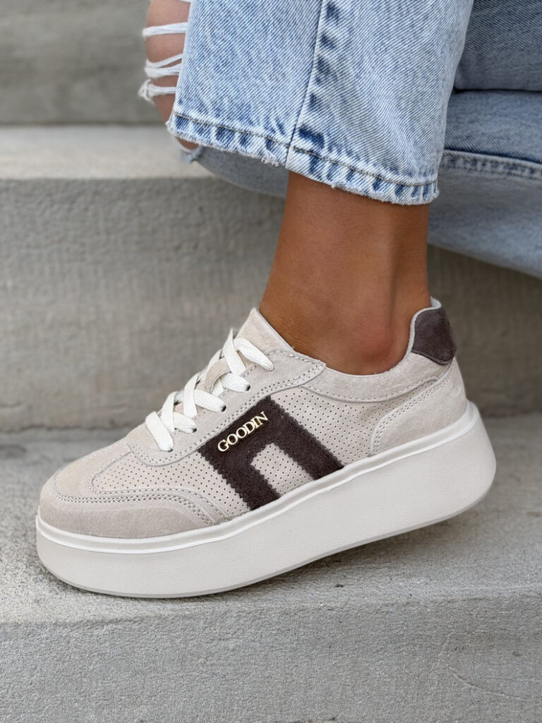 Trampki na wyższej podeszwie MARIVELLE BEIGE skóra naturalna
