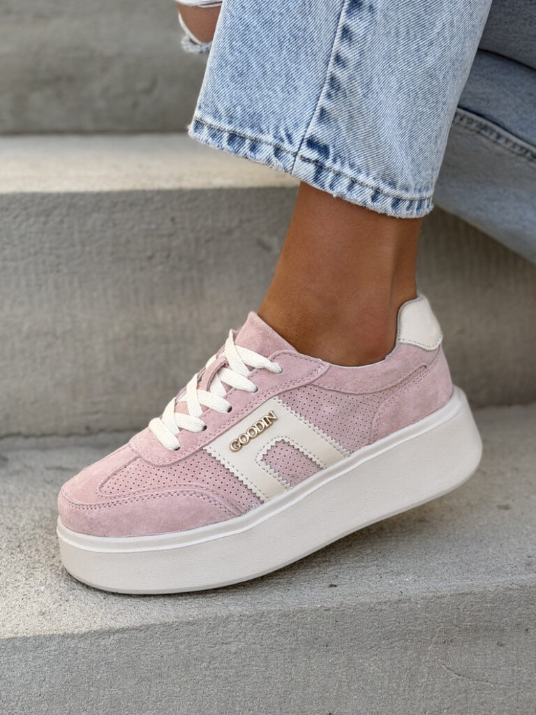 Trampki na wyższej podeszwie MARIVELLE PINK skóra naturalna