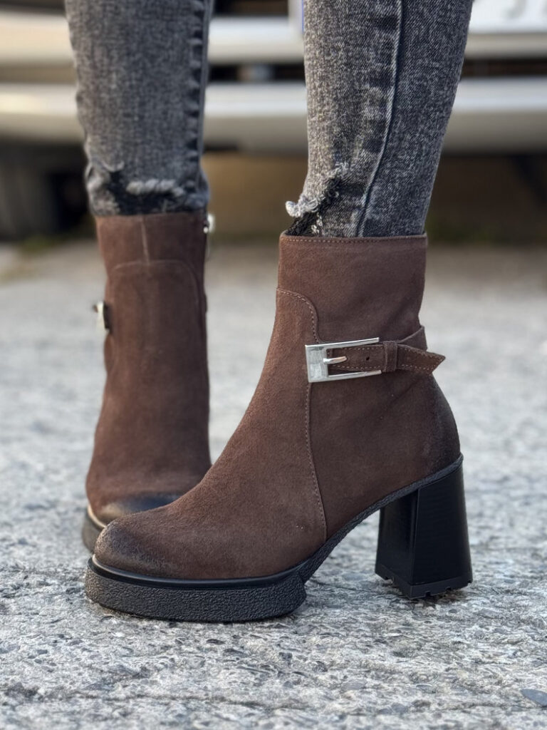 Ocieplane botki KAZADII NOELIA brąz na obcasie skóra naturalna