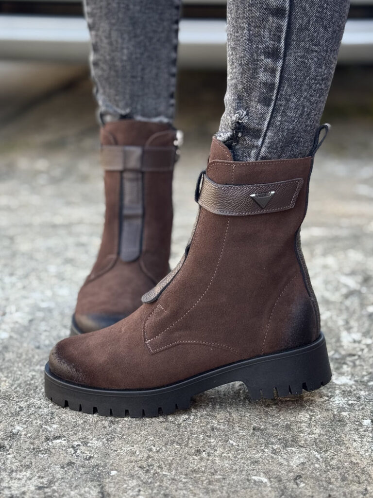 Ocieplane botki KAZADII ARTEMIA czekolada groch