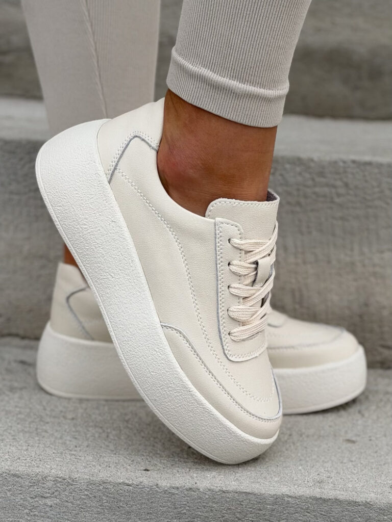 Lekkie trampki AVELA BEIGE na wyższej podeszwie skóra naturalna
